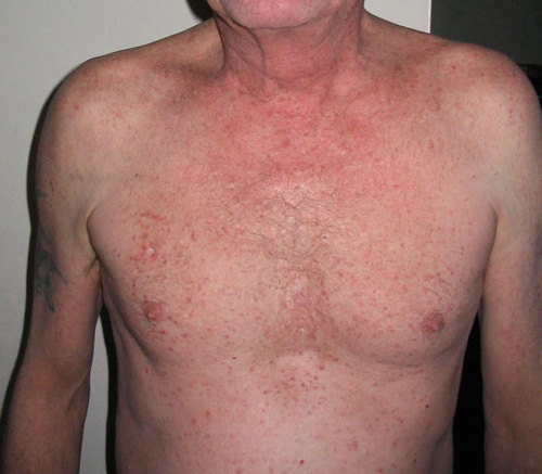 Improvement after showering regularly in chlorinated water, beginning January 23, 2007.