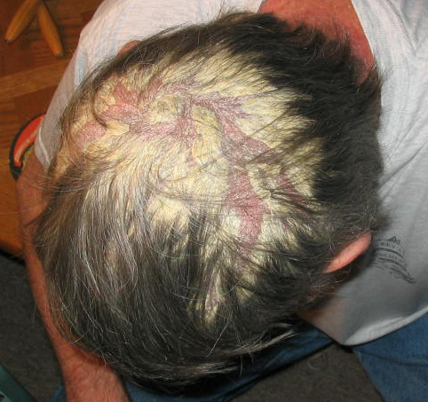Man's scalp using