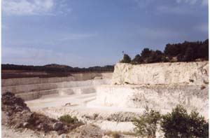 In other words, this one town was completely unlike the rest of Provence, the Auvergne, the Dordogne. A couple of days after I arrived I discovered why, when I drove toward St. Remy and came around a corner and saw the most colossal factory. OMYA! The biggest OMYA mine in the world. The limestone and chalk (and Roman tombs and whatever other ruins might get mixed up in it) that define Provence are here reduced to powder, trucked and trained away, leaving behind a hole in the earth that is almost beyond comprehension.