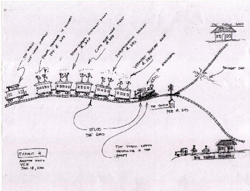 This train has an engine, but no engineer. The public keeps the train fueled by shovelling in money. Each of the cars in the train represents a different fight being waged before the Public Service Board or other arbiters: the sale of Vermont Yankee, the Restructuring docket, the CVPS rate case fight, the Hydro-Quebec contract, the Independent Power Producers' Contract; and at the tail end is the public, cut loose from the rest of the train and coasting along with no one clearly advocating for their interests. We are nearing a fork in the track, and time is running out.